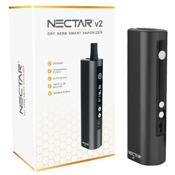 Le Nectar v2 est le vaporisateur d'entrée de gamme du fabricant britannique Nectar Medical Vapes. Ce vaporisateur par conduction chauffe en 25 secondes jusqu'à 220 °C et traite herbes sèches et extraits.