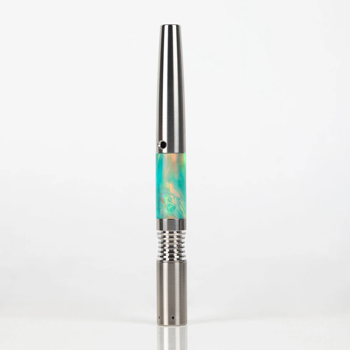 Das Simrell FMJ ist eine Titanium-Spitze im DynaVap-Stil mit Glasmundstück und Hybridheizung durch Butangasfeuerzeug. Die Tip ist kompatibel mit DynaVap-Caps und anderen 14-mm-Komponenten, sodass sich das FMJ reibungslos in bestehende DynaVap-Setups integrieren lässt. Wasser-Pipe-Adapter sind inbegriffen, was das FMJ zu einem vielseitigen Trockenblüten-Werkzeug für anspruchsvolle Nutzer macht.
