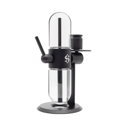 Zwei miteinander verbundene Glasgefäße rotieren um 360 Grad. Beim Kippen fließt Wasser und erzeugt durch Sog einen gleichmäßigen Dampfzug. Als Vaporizer wird eine externe Wärmequelle (Butangas-Brenner oder DynaVap-Heater) auf den Einlass gesetzt.
